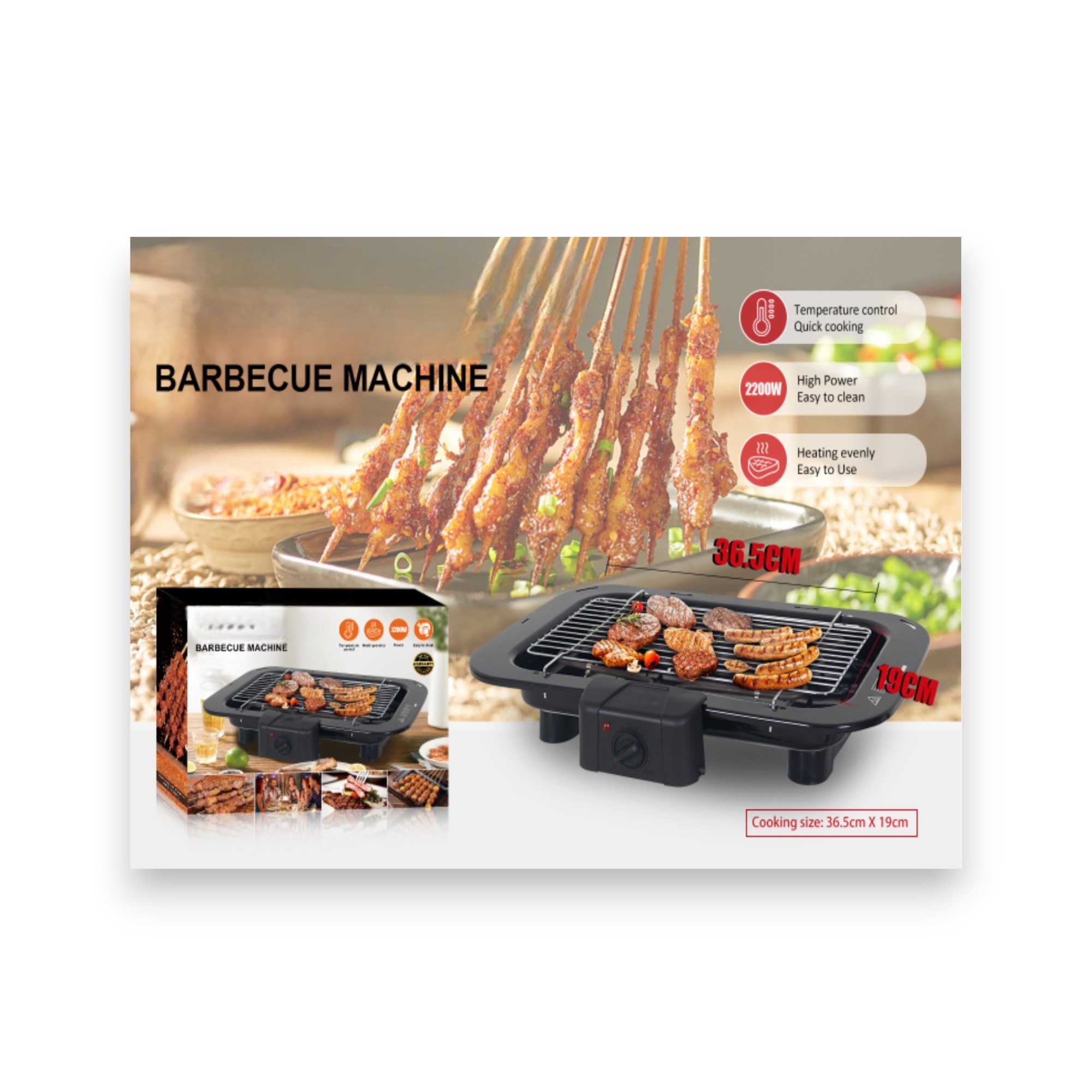 Experience the joy of outdoor-style grilling from the comfort of your kitchen or patio with our sleek Black Electric Barbecue Grill. Powered by a robust 2200W heating system, it delivers even heat distribution for perfectly grilled meals, every time.